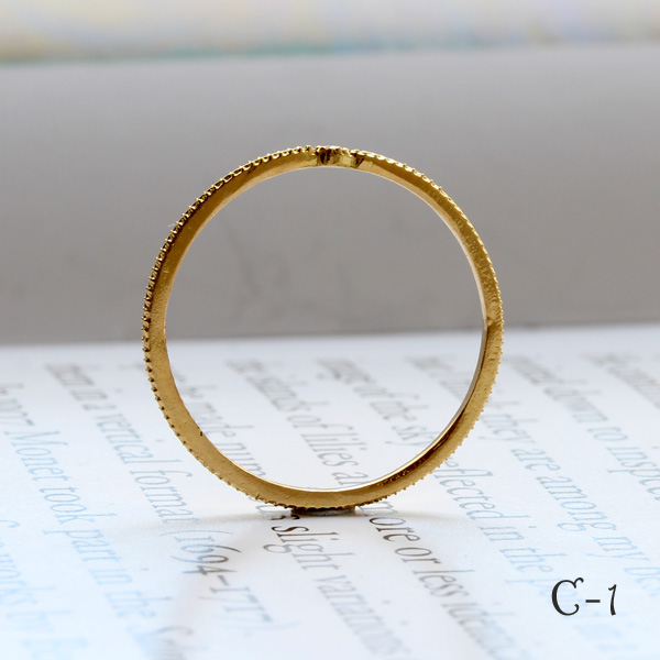 ロザリン・ドットは、優美なドット状の装飾が特徴の可憐なリングです。 小さな表情の積み重ねがやさしい印象をつくり、華奢なリングをお探しの方や、さりげなく可愛らしさを添えたい方にもおすすめです。