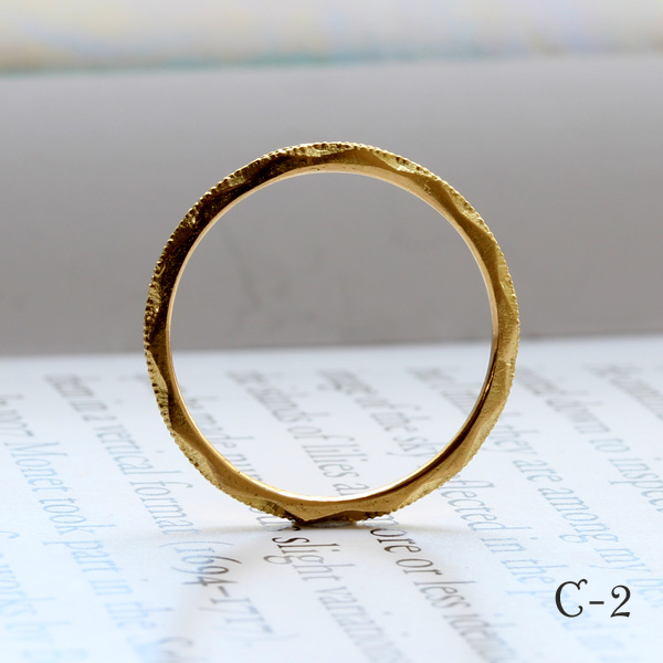 セリーヌは、手仕事の温もりを感じさせるナチュラルなリングです。 やさしく穏やかな雰囲気があり、華奢なリングを自然体で身につけたい方におすすめの一本です。