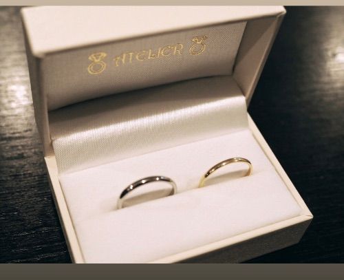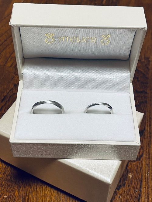 2つで8万円弱、しかもプラチナは通常よりいいもの!シンプルなムスビで男性用だけ鏡面仕上げで女性用はもっとマットな仕上がりだと思ったのですが、気持ちすこしピカピカしてる??もしかしてジュエリーアトリエさんの粋な計らいでお揃いに近いようにしてくださったのか???という素敵な仕上がりの指輪を作ってくださいました!
