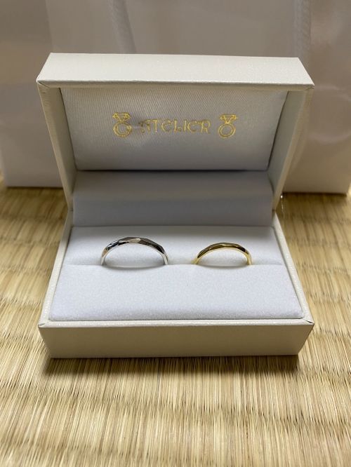 お忙しい中、早めに頂きたいというこちらのわがままにも、お答え頂き、本当にありがとうございました。後撮りに無事間に合い、ほっとしております。サイズもちょうどよく、2人ともお気に入りの新しいリングで、幸せの日々を送らせて頂いております。福岡県にお邪魔した際には直接会って感謝の気持ちをお伝えしたいと思っております。本当にありがとうございました。