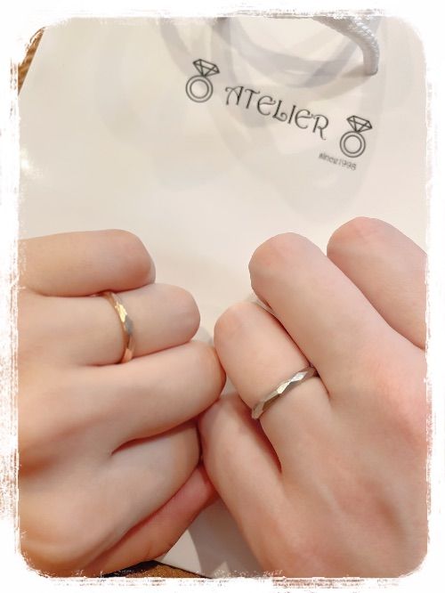 数ヶ月前に旦那が結婚指輪をなくしてしまい、私の方も歪んできていたので修理を検討していたところ、ジュエリーアトリエ様を見つけ、購入させて頂きました。初代指輪はウェーブががっていたもので今回は長く飽きずに付き合えるかなとシンプルなMUSUBIの3mmを選びました。結婚記念日まで残り3週間弱..せっかく買うなら結構記念日に合わせたい!とおもい超特急を使わせて頂きました。お値段も安い、納期も予定より1週間も早い!少し創りな大丈夫なのかな、と不安になってしまいましたがケースを開いたらすごい美しく、一般的に2ヶ月程待つ結婚指輪と違いがわからないほど素敵な指輪に感動しました。結婚記念日につけ始めようと思いましたが気に入ってしまいすぐ着けちゃいました!またメンテナンスやベビーリングなど。是非お願いしたいなと思います!