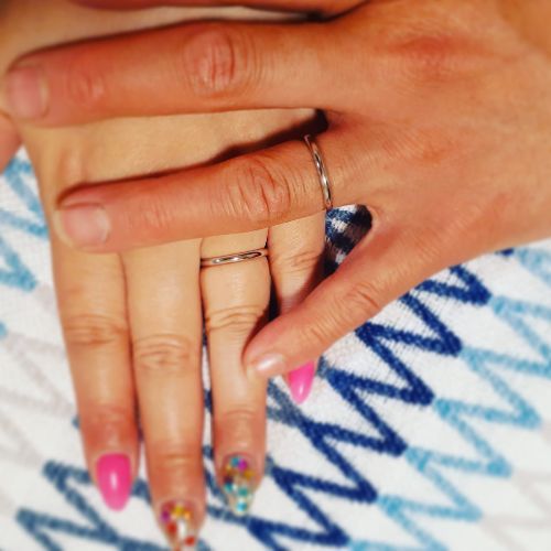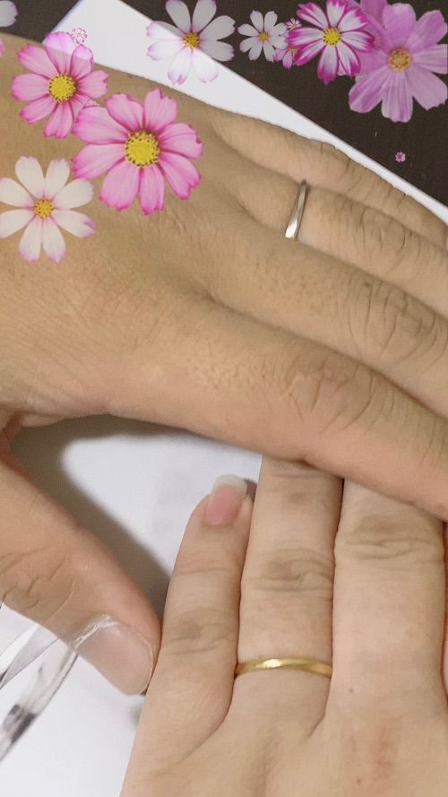 お直しも早めに届いたので、ようやく今日から2人で同じ指輪をつける事ができました!
