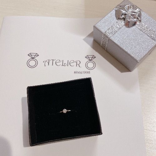 今回結婚することになり、価格はお手頃でプラチナの結婚指輪がほしいと思い、いろんなお店の情報を探していたらジュエリーアトリエさんを見つけました。ネットのお店かと思ったら同じ福岡県に店舗があったので、実際に目で見て指にはめてみると、欲しかったデザインと似合っていたデザインが違っていました。また、お店の職人さん総出でご挨拶してくださったり、ガラポンで外れてもお菓子をもらえたりと指輪の質もお店もとてもよかったです。ぜひお店にいってほしいです。また、配送を予定していた日より、1週間早い入籍日に送ってほしいとワガママを申し上げたところ快諾してくれて、2週間前に届いたので実家の挨拶にも間に合いました。とても嬉しかったです。今度5月に産まれる子にベビーリングもお願いしようと思います。本当にありがとうございました!