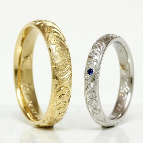 ハワイアンジュエリー独特のデザインが、ありきたりな結婚指輪を感じさせない雰囲気があり、幅広い世代から愛されています。