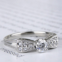 中心に大きめのダイヤモンド左右のリボンの部分にも5石