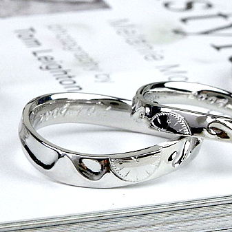一つだけの結婚指輪を見ても一見時計とは分かり難いと思いますが、丁寧にも地盤は手彫りになっています