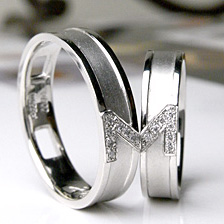 Mの文字はキラキラと輝くダイヤモンドを彫留しています。彫留でもアウトラインのフチを丁寧に残して、いるため、デザインを強調しています。