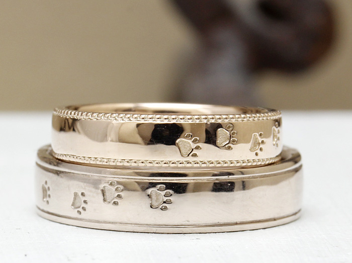 足跡を入れて二人結婚指輪を歩いていったように作っています