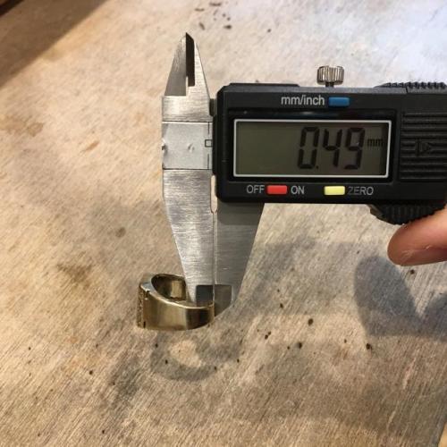 例えば、今回の例で紹介すればこの指輪の一番薄い部分では0.5mm以下で0.49mmでした。
