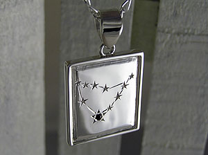 鏡面に仕上げたペンダントに一つ一つをタガネで彫りデ