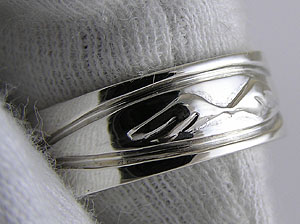 リング全体にラインを施して、中央に羽を浮き彫りで表